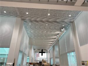 キャンパス内部は、大きな壁を極力排除し、展示スペースや教室が自然につながる構成です。