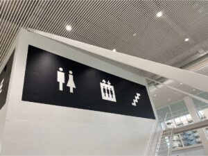 サイン計画にも特徴があり、文字だけに頼らず、大胆な図形や記号を用いたグラフィック表示で直感的に理解できる工夫がなされています。